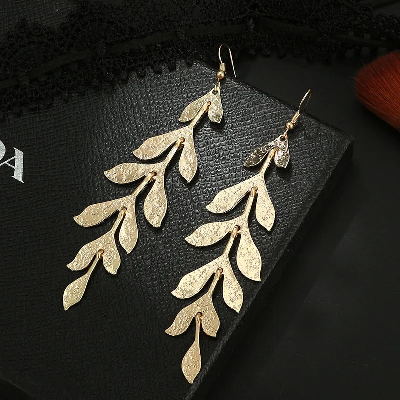 Женские Висячие серьги с длинными кисточками и золотыми листьями, массивные серьги-капельки с полыми листьями, 2019