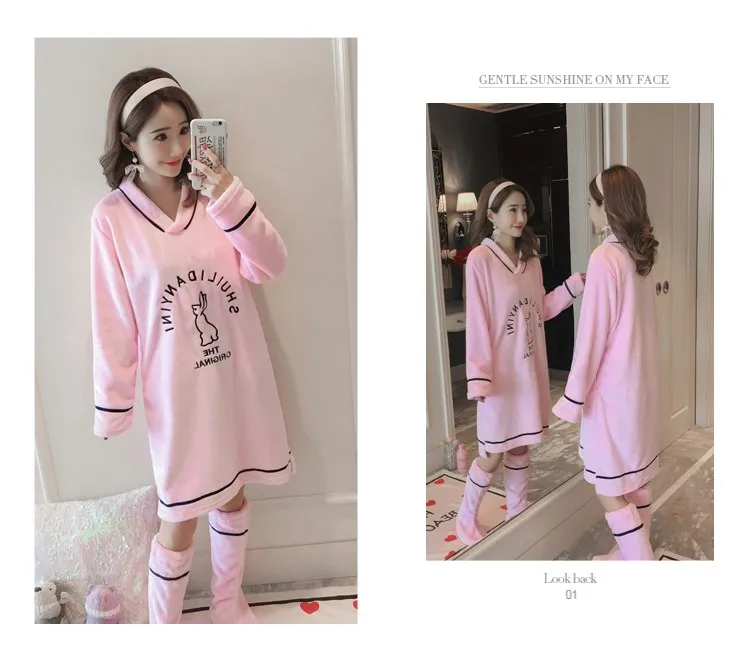 2019 зимнее Новое Стильное Ночное платье бархатная ночная рубашка с вышивкой + носки удобные милые пижамы ночнушки одежда для сна платье