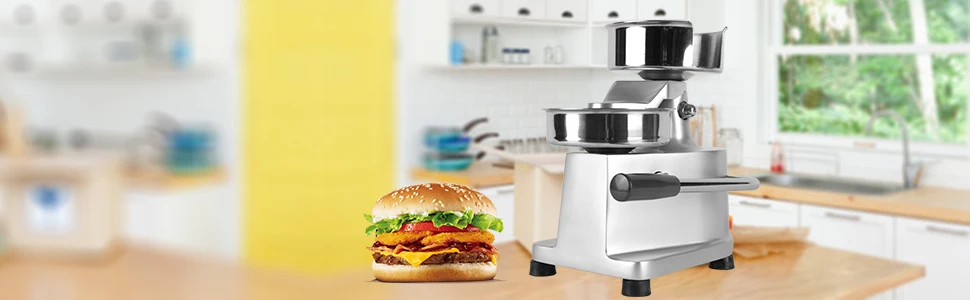 Простота в использовании: эта машина для гамбургеров проста в эксплуатации. Удобный для того чтобы очистить: чашу можно легко демонтировать и очистить. Материал: корпус и поднос из нержавеющей стали из алюминиевого магниевого сплава. Бумага для патчей: 500 бесплатно гамбургер бумага для патчей.