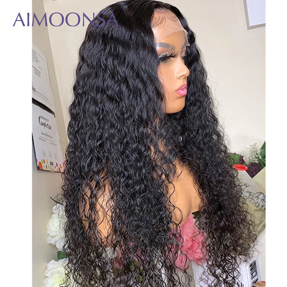 Прозрачные парики на шнурках 360, волнистые натуральные волосы, невидимые узлы для женщин, черные Человеческие волосы Remy Aimoonsa