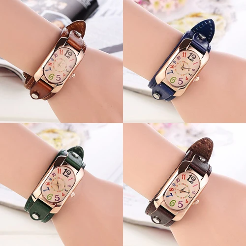 Повседневный ремешок из искусственной кожи, продолговатый чехол, кварцевые наручные часы.