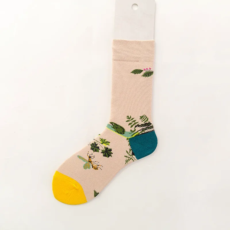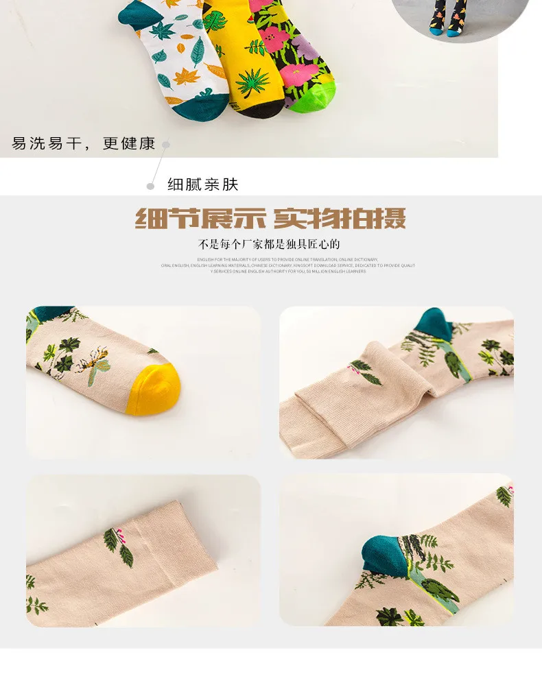 Женские модные яркие цветные носки с принтом, повседневные хлопковые носки