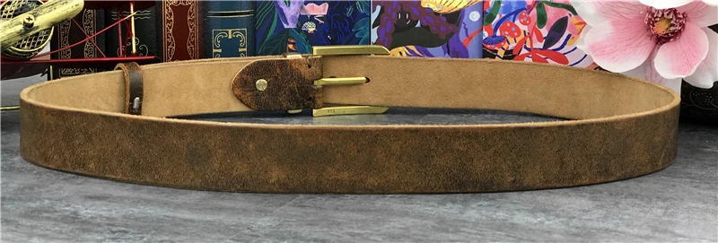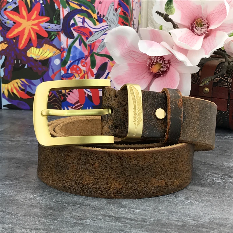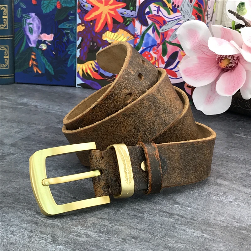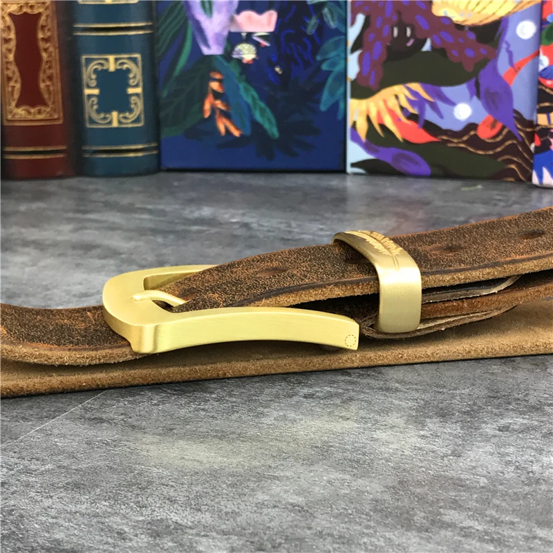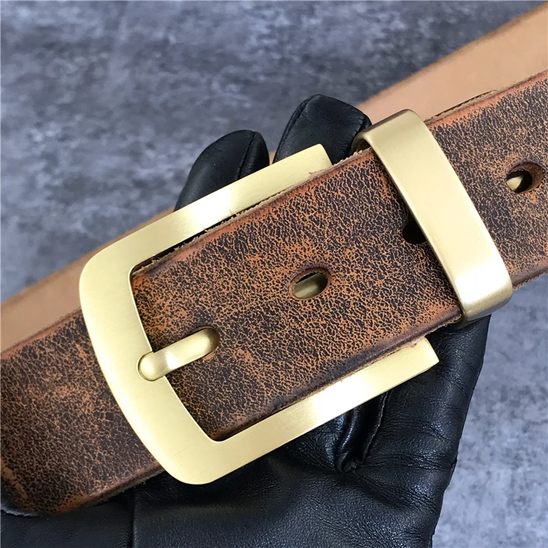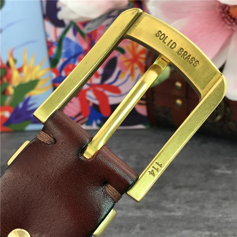Винтажный латунный ремень с пряжкой из натуральной кожи мужской пояс с желтым поясом ковбойские джинсы мужской ремень длинный 130 см ремень для брюк MBT0006YBСтильA: Карие РеменьСПеро петля