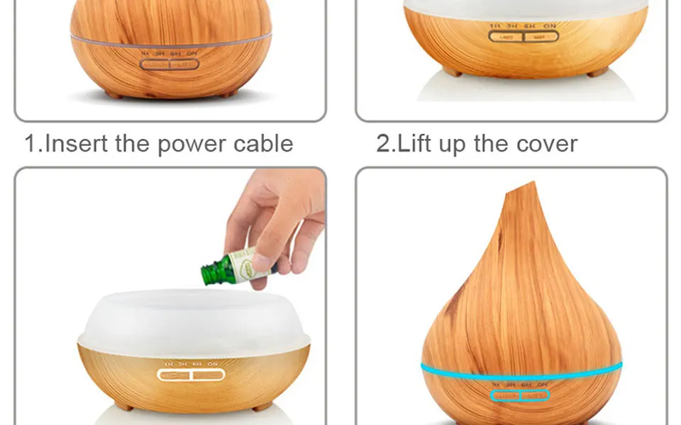 Параметры арома-диффузора:Размер изделия: 170 мм * 170 мм * 210 ммМощность: 12 ВтЕмкость: 400 млВремя работы: около 4 часовМатериал: полипропилен + АБС-пластик, древесное зерно FinisheУльтразвуковая частота: 2,4 МГцФункция: