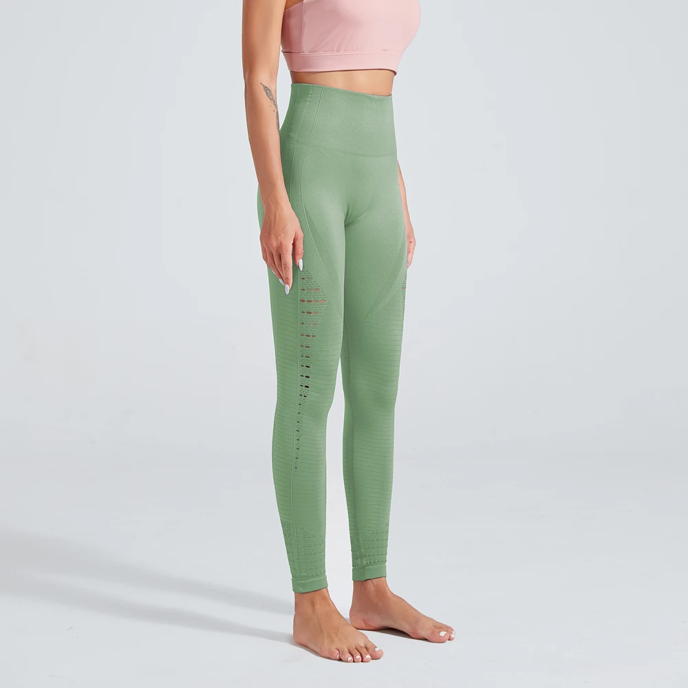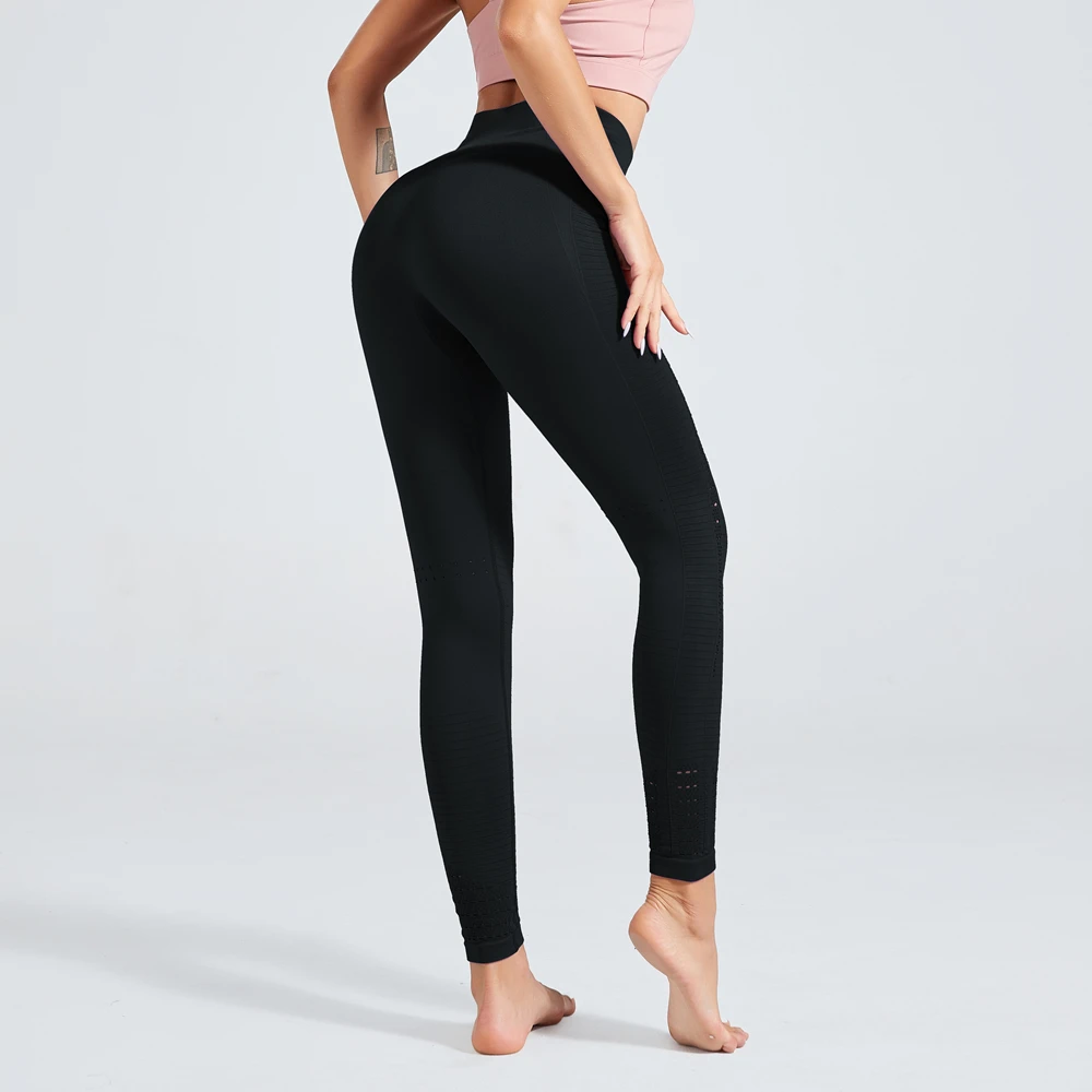 Сексуальные Бесшовные Леггинсы с высокой талией для спортзала, спортивные женские штаны для фитнеса и йоги, эластичные нейлоновые дышащие Полые Колготки для бега, спортивная одежда