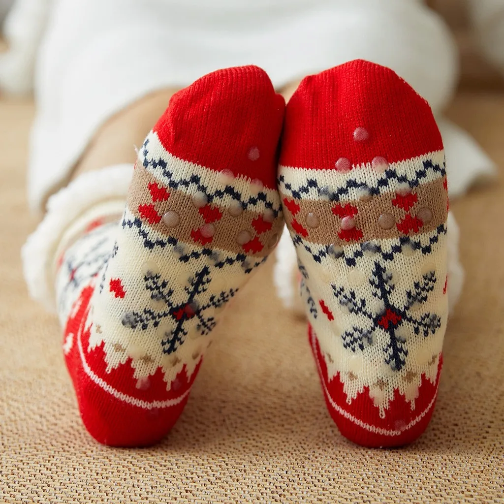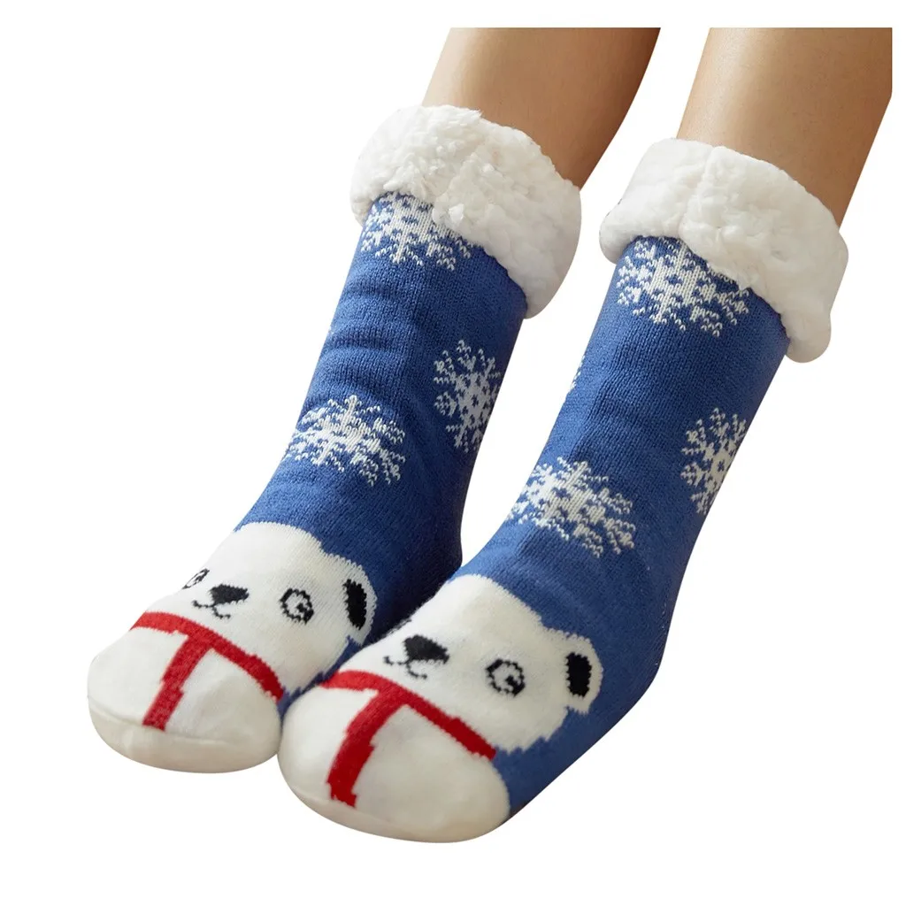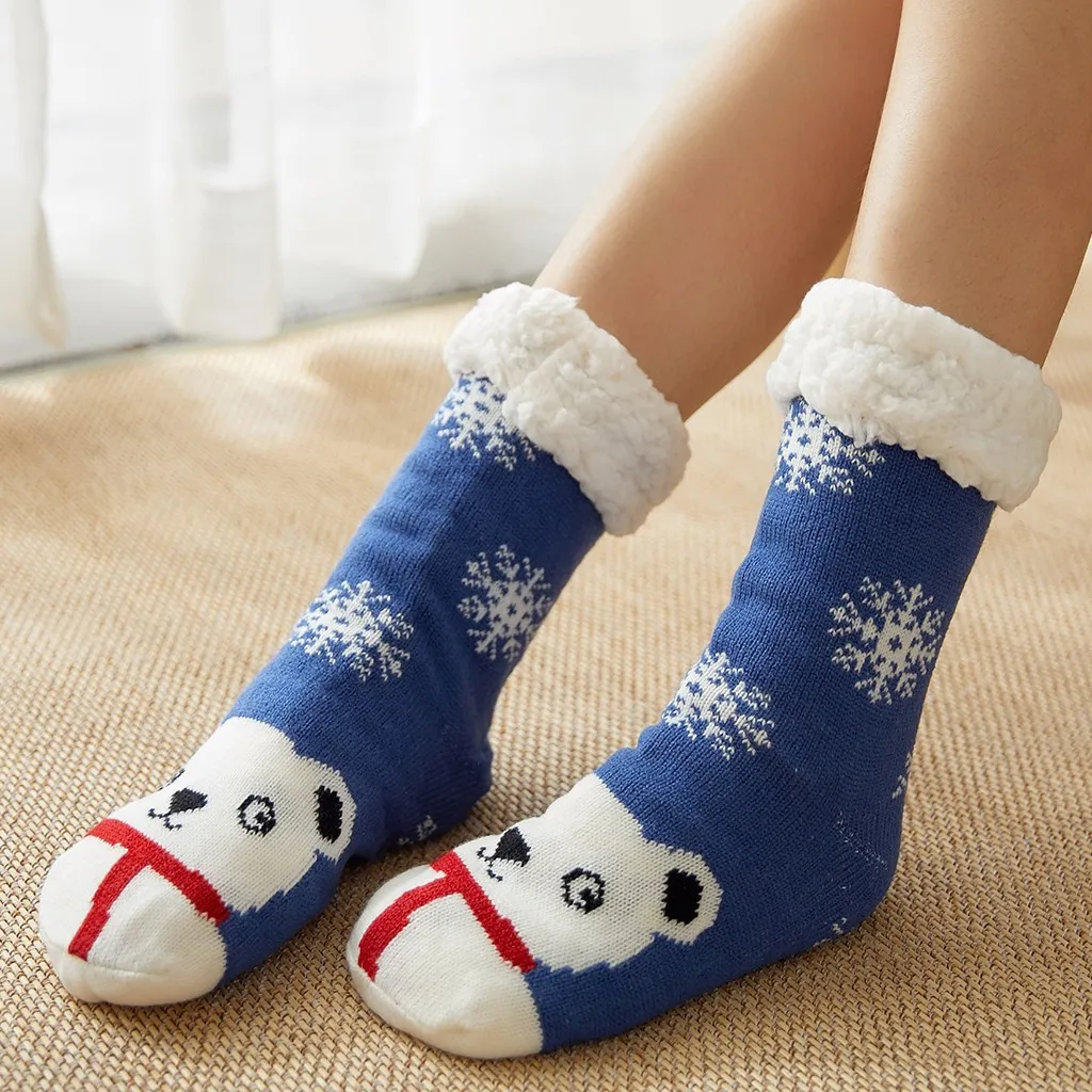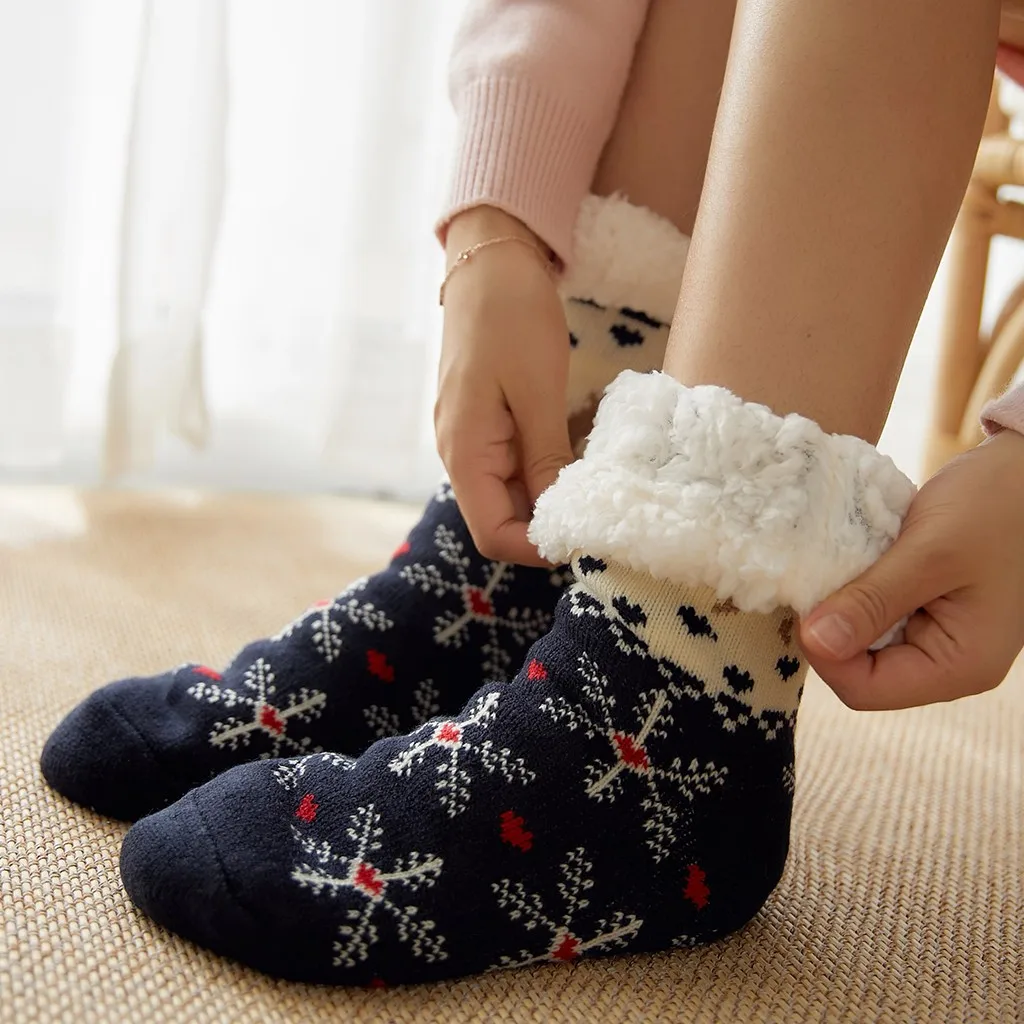 Женские хлопковые рождественские толстые нескользящие носки-тапочки с принтом Рождественский подарок модные зимние милые шерстяные ковровые носки Лидер продаж 41 *