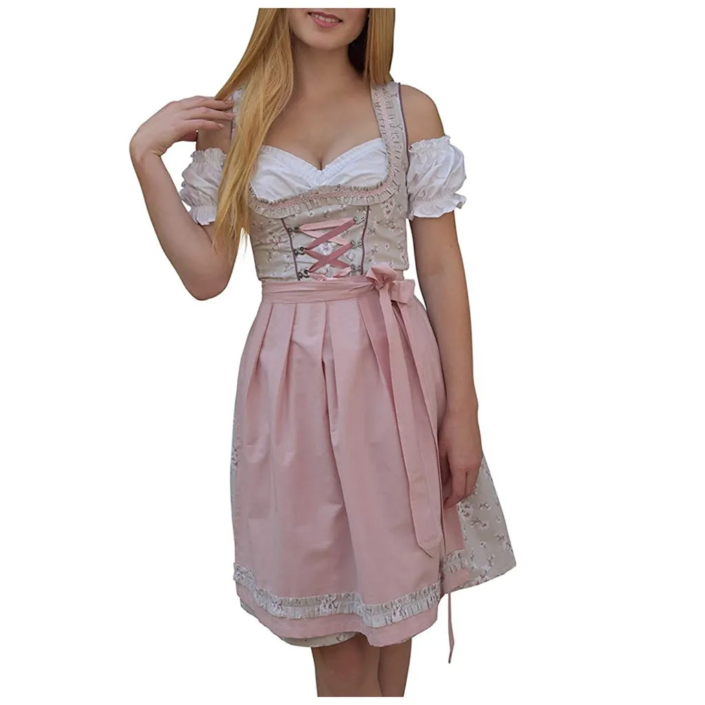 Beer Festival Women Sex Floral Print Dress With Apron And Blouse Cosplay Clothes