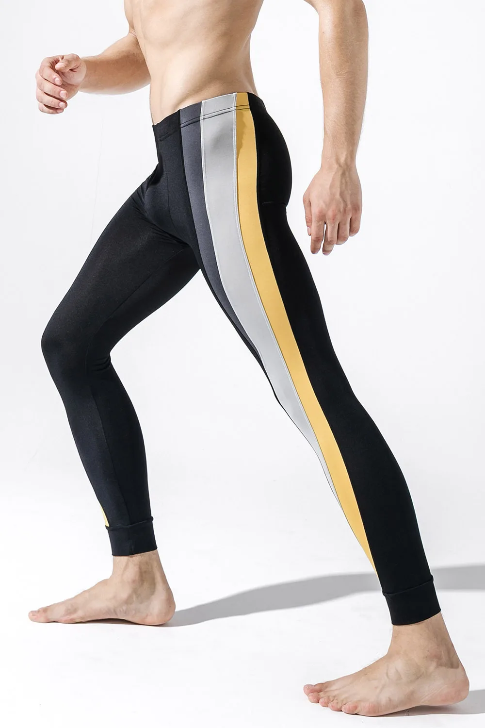 Сексуальные мужские колготки с контрастными полосками, спортивные Леггинсы для тренажерного зала, мужские компрессионные штаны, колготки для бега, мужские тренировочные леггинсы для тренировок