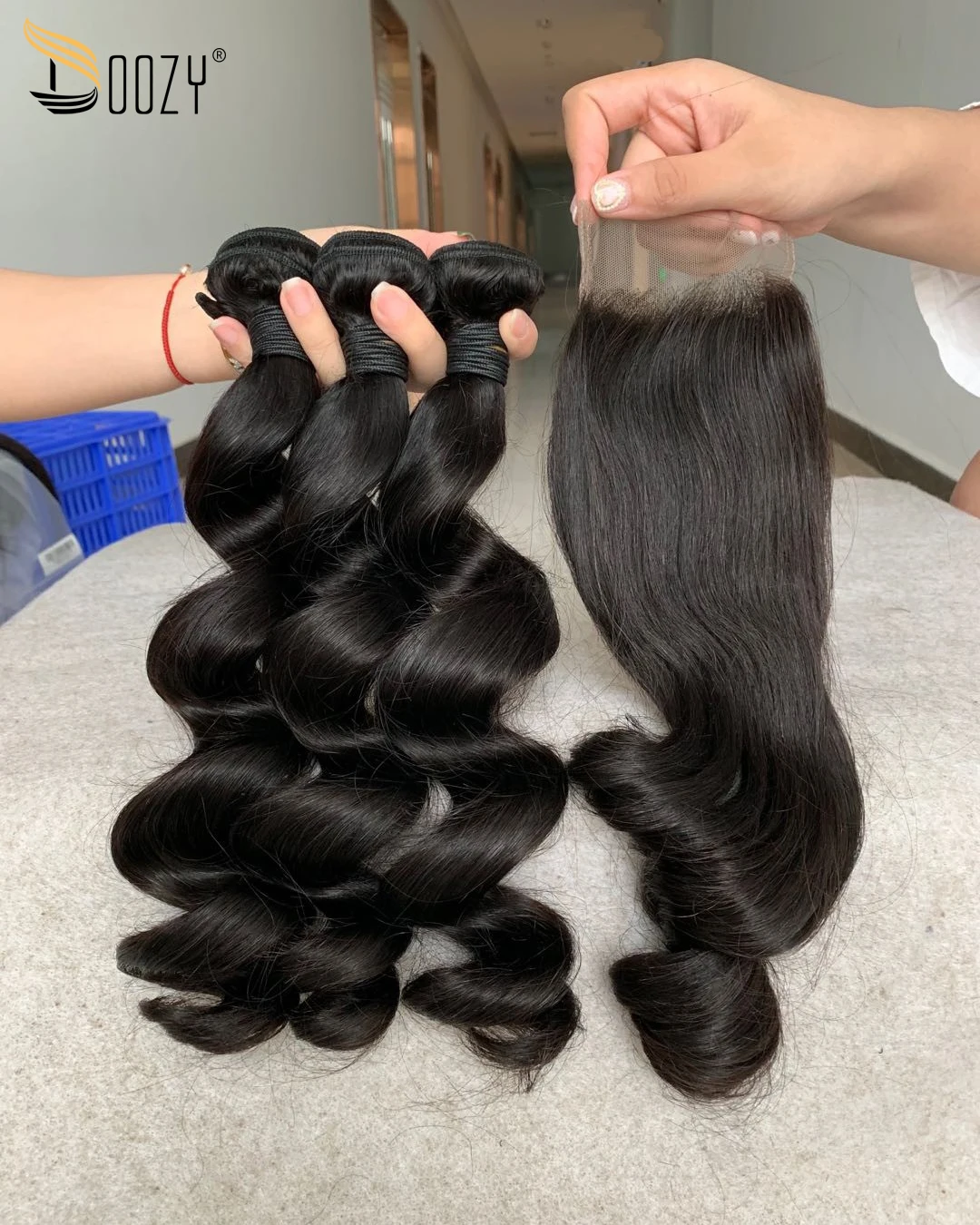 Doozy волосы 10A девственные человеческие волосы 3 пучка с бразильские волосы с закрытием свободная волна