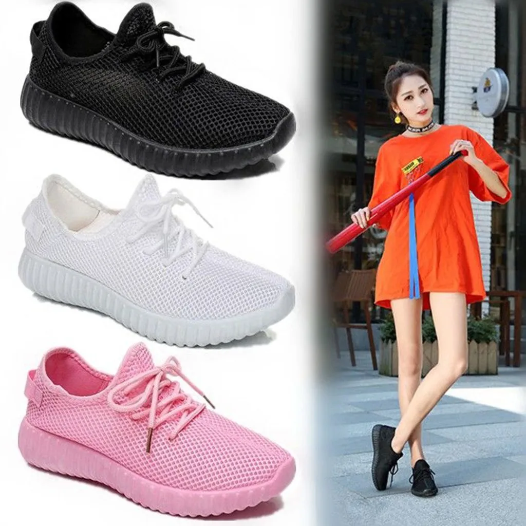 Женская обувь для девушек; Модный однотонный сетчатый светильник; Спортивные кроссовки для бега; Повседневная обувь