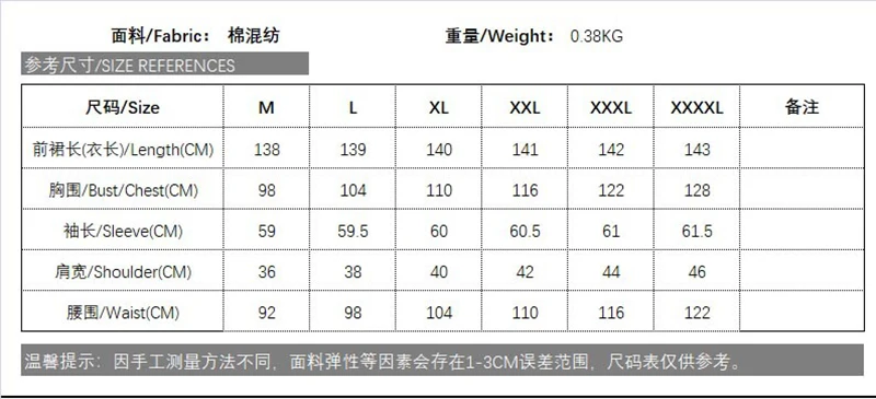 4XL: плечи 46 см, обхват груди 128 см, обхват талии 122 см, рукав 61 см, длина 143 см
