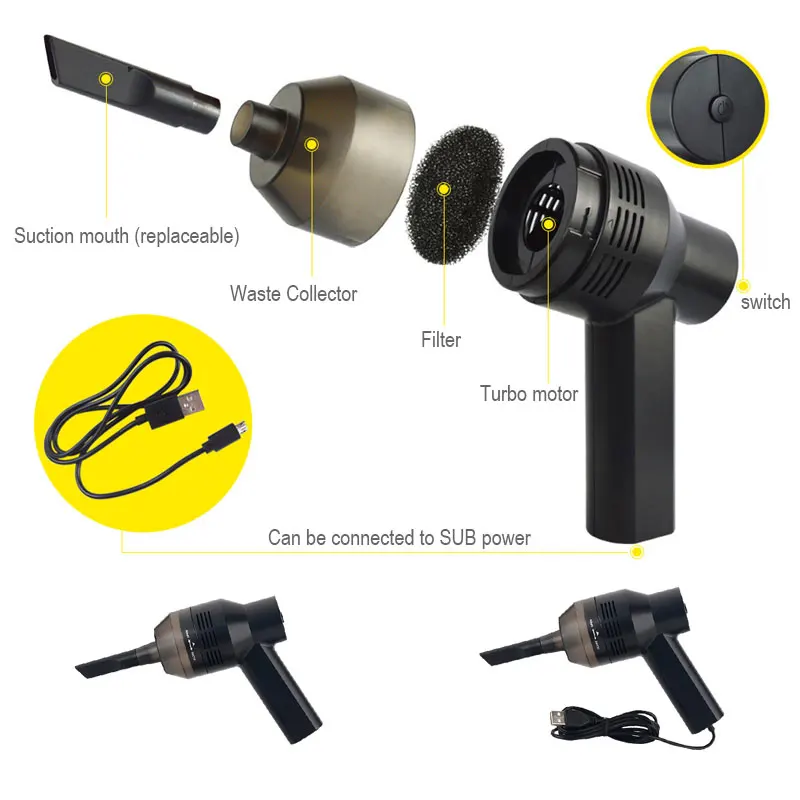Мини-размер легко очищает грязь в уголке клавиатуры, он также предназначен для вакуумирования более тяжелой грязи и пыли.