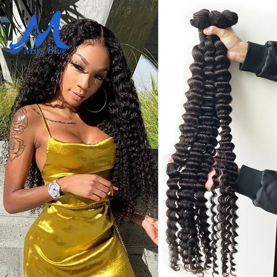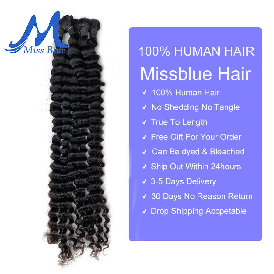 Missblue, бразильские волосы, пряди, глубокая волна, 100% натуральные вьющиеся человеческие волосы, пряди, Remy, волосы для наращивания, 28, 30, 38, 40 дюймовая уточная нить