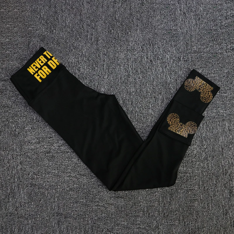 Штаны для йоги, леопардовые, с Микки Маусом, Женская Спортивная одежда для бега, леггинсы для фитнеса, бесшовные, с контролем живота, колготки для спортзала, штаны с рисунком мышки