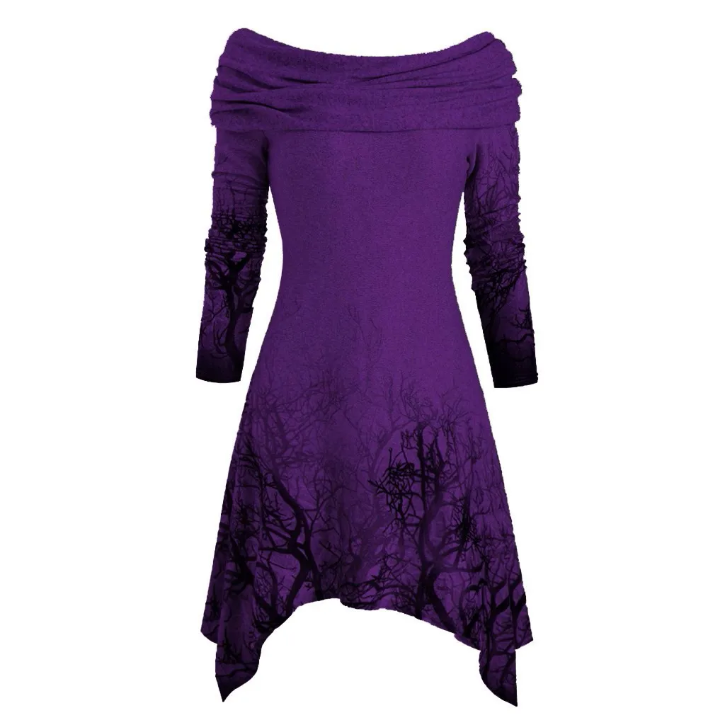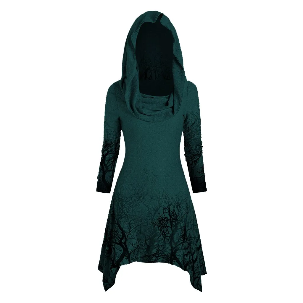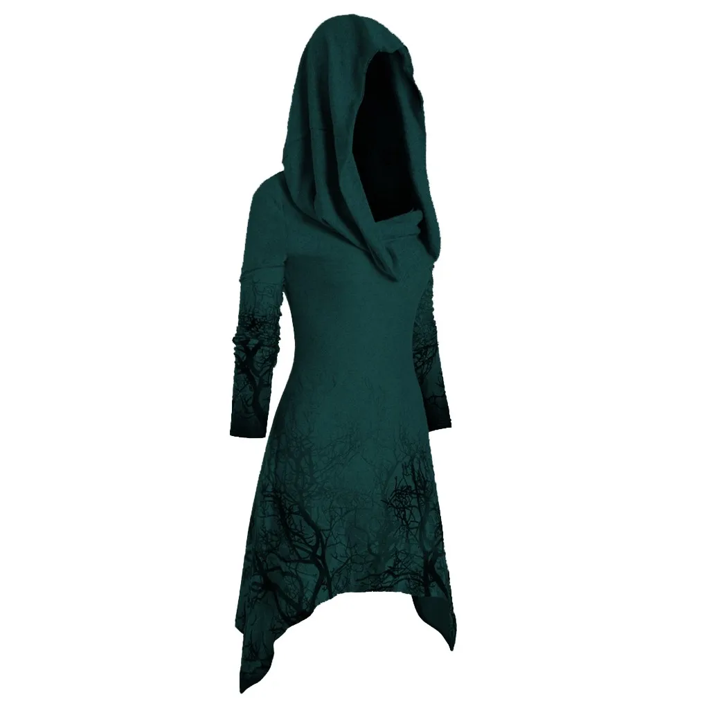 Women's Halloween Tree Print Convertible Collar Asymmetrical Knitwear Cloak Tops