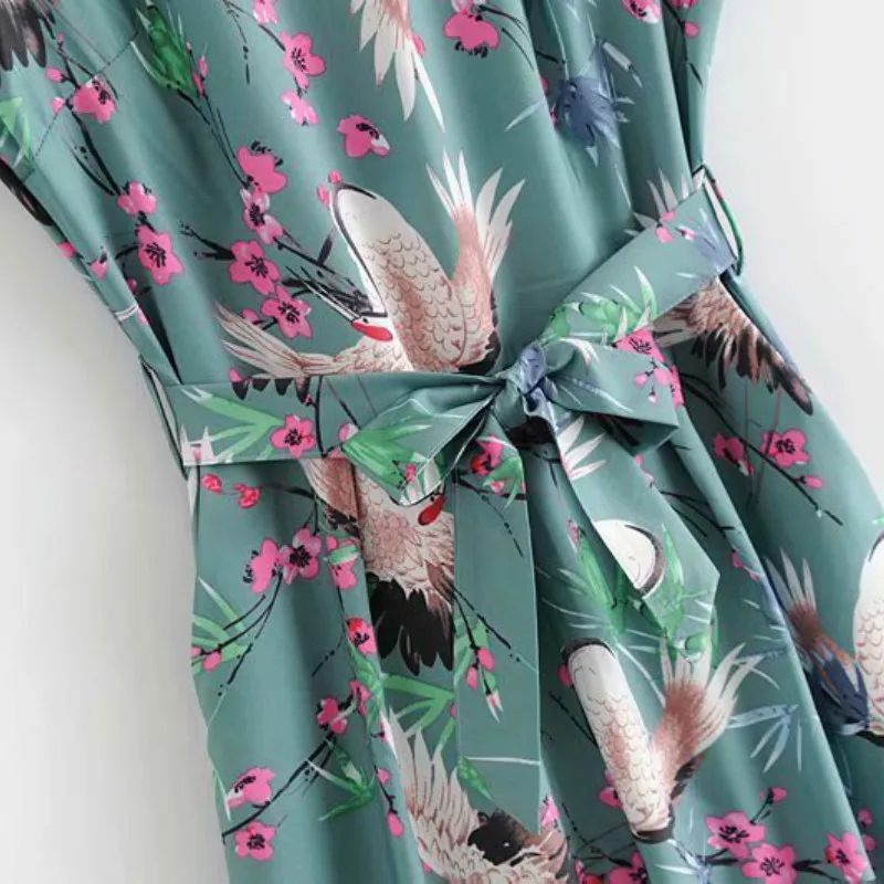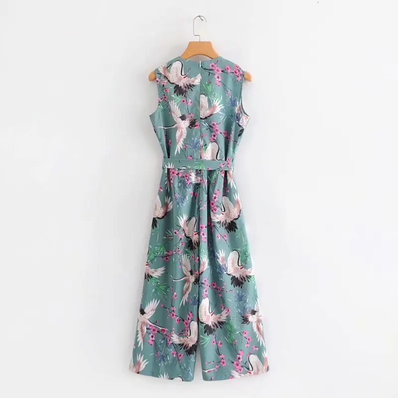 Yocalor Модный женский комбинезон с принтом Журавля без рукавов круглым вырезом