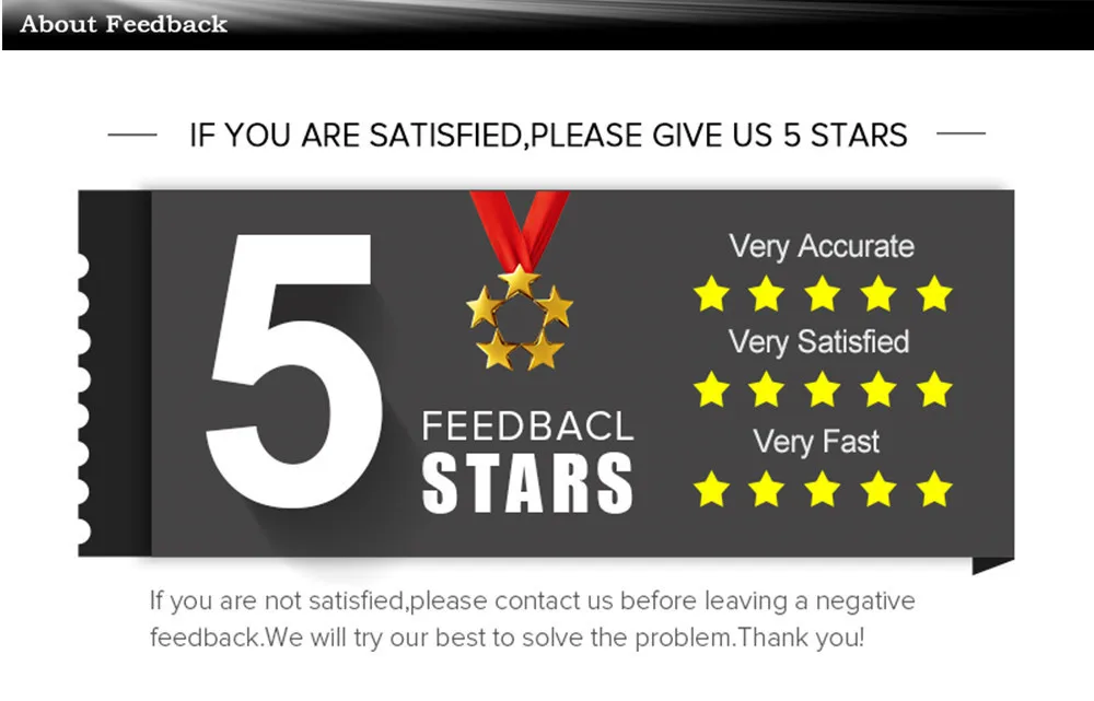 Please CONTACT US FIRST if you got any problem. We have professional after-sale service team who will handle your problems very positively. Please DON'T LEAVE US NEGATIVE OR NEUTRAL FEEDBACK WITHOUT CONTACTING US.