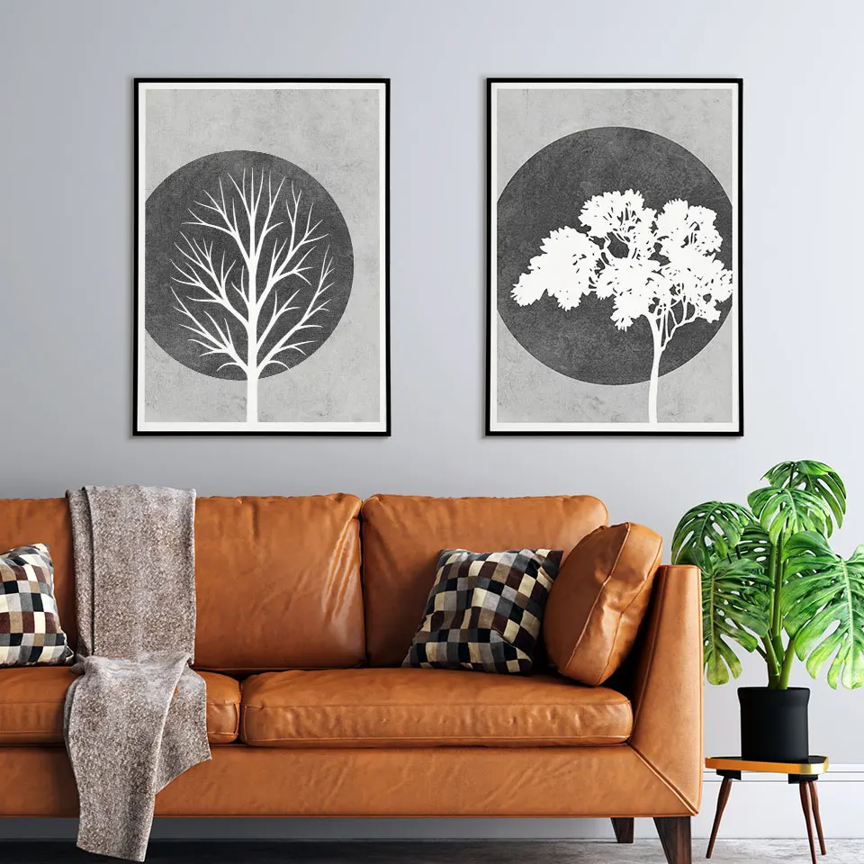 Серое белое дерево силуэт плакаты принты абстрактный плакат настенный Арт холст живопись настенные картины для гостиной домашний декор