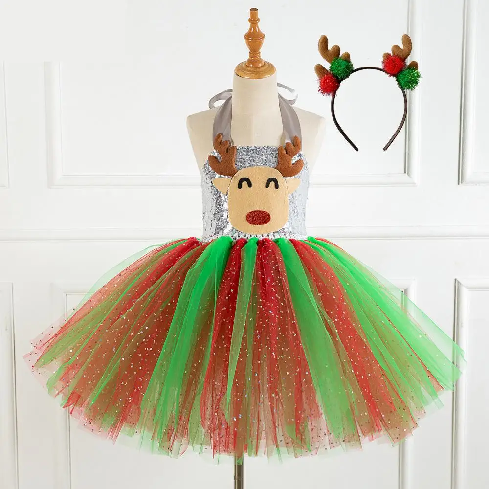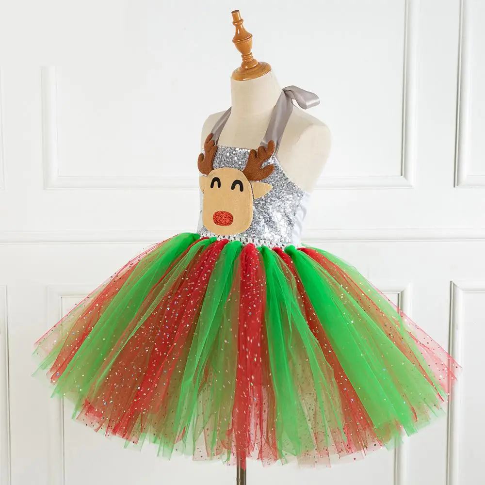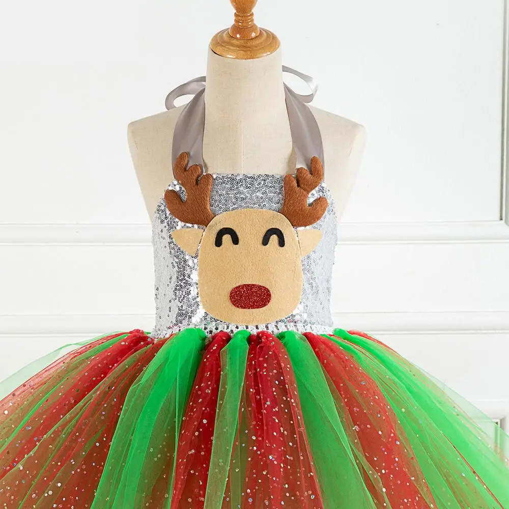 Sequins Deer Tutu Dress Halloween Costume for Girls Kids Birthday Party Dress Children Cosplay Animal Sika Deer Dress Up Clothes