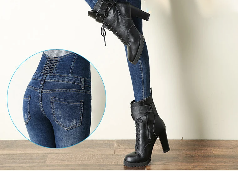 Джинсовые брюки женские с высокой талией голубые винтажные облегающие джинсы