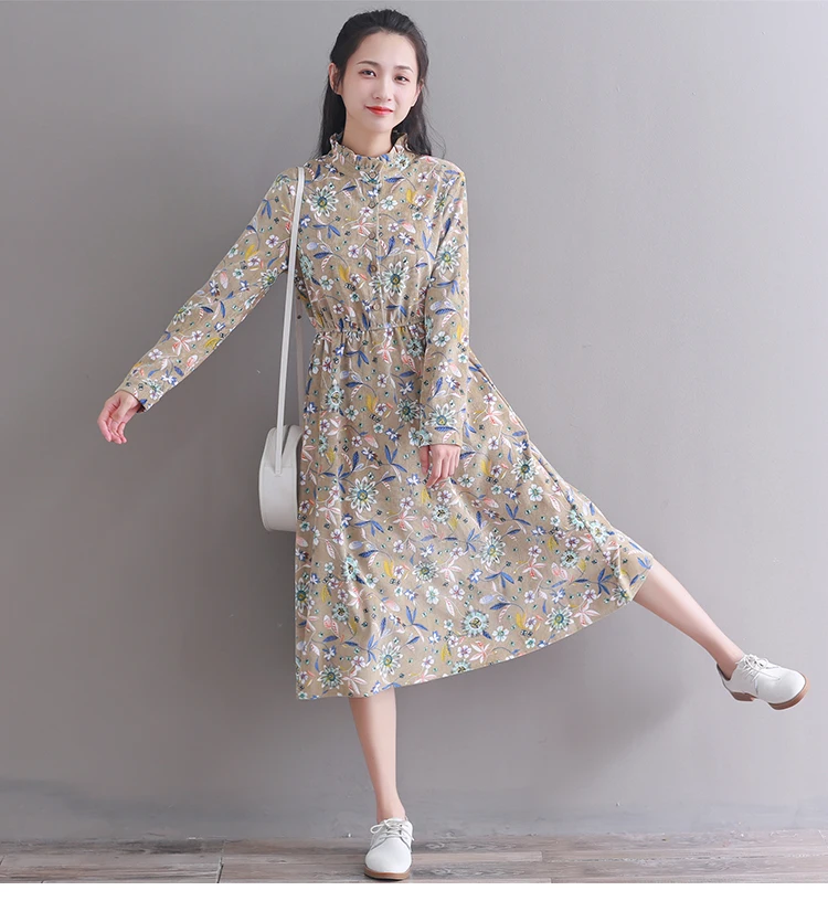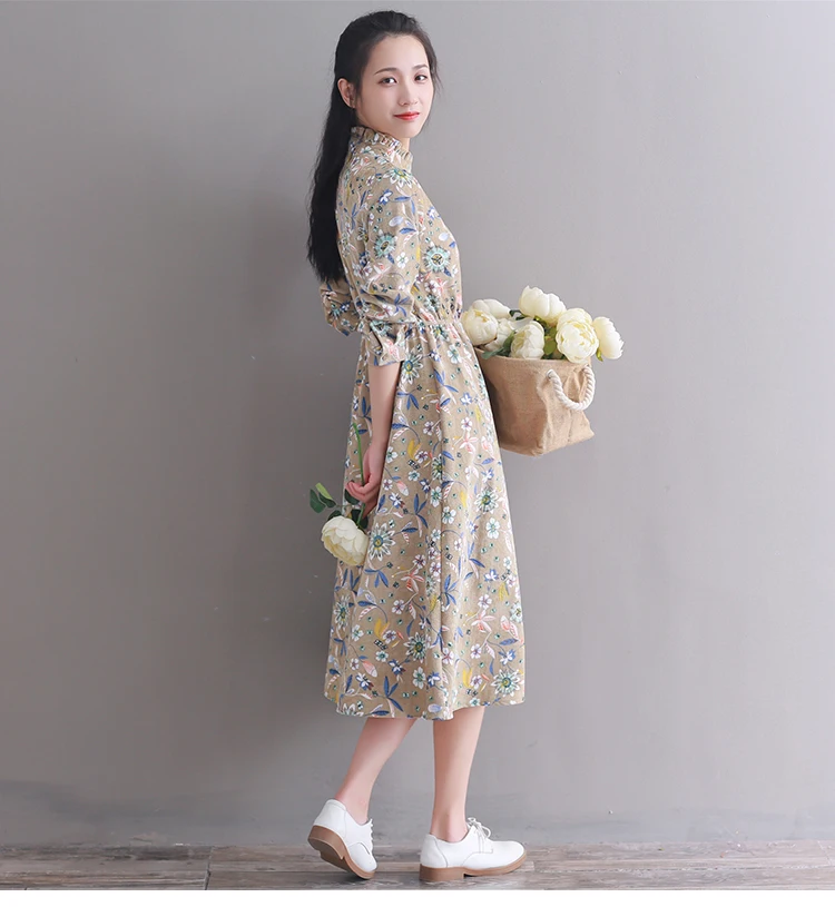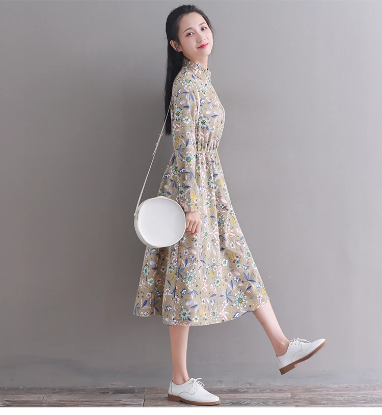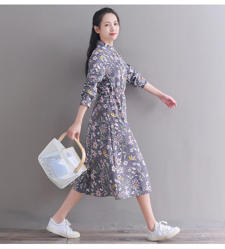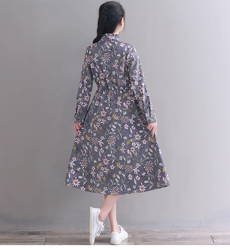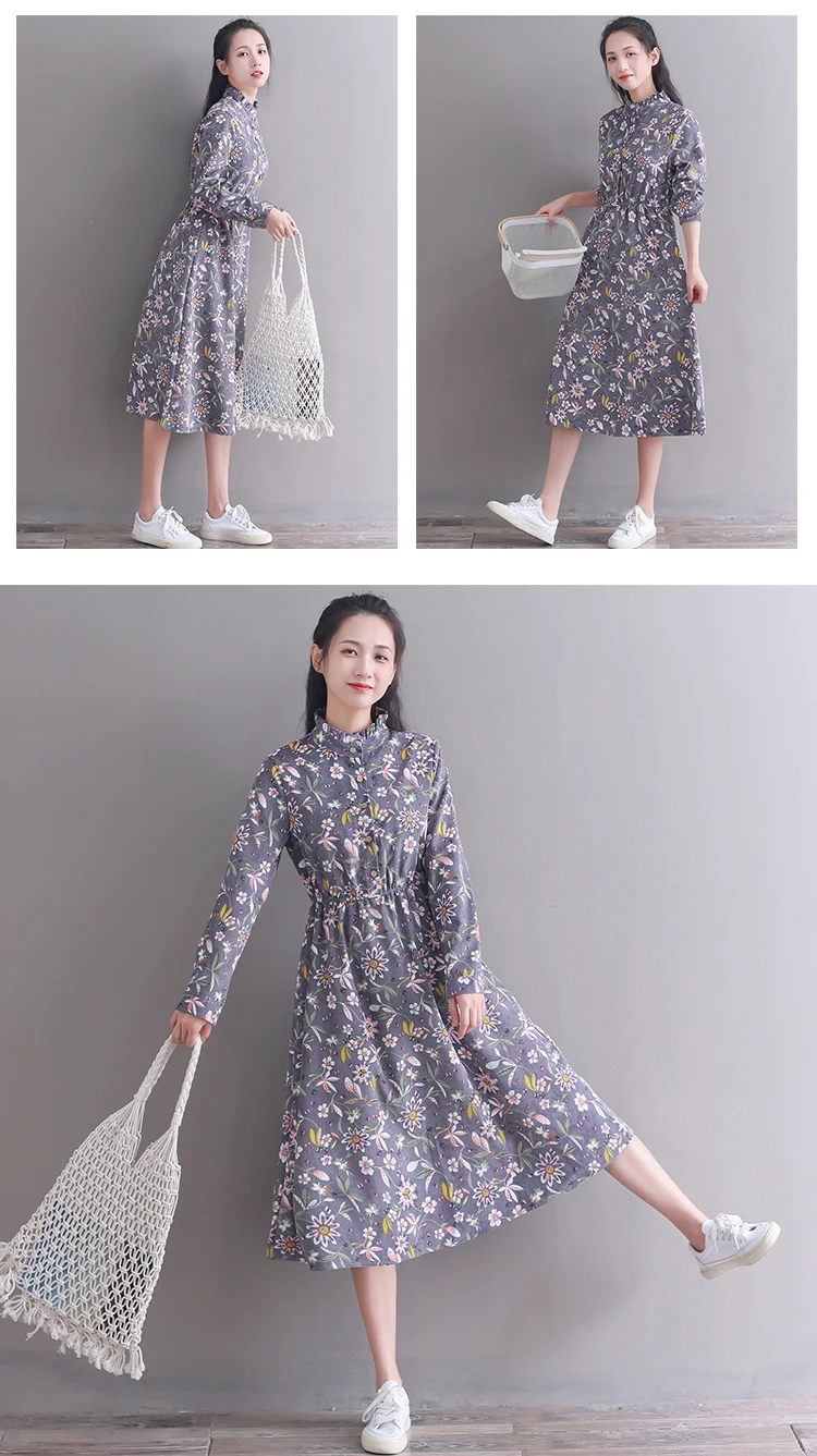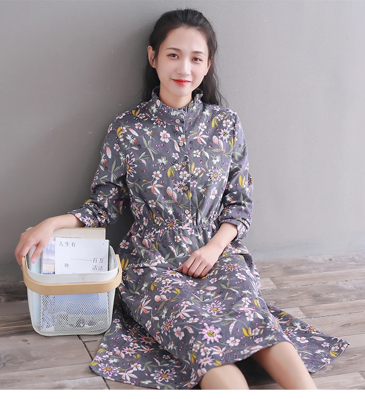 Mori Girl осень весна женское платье с цветочным рисунком стоячий воротник F1er Принт vestidos mujer винтажное элегантное вельветовое длинное платье DC664 <