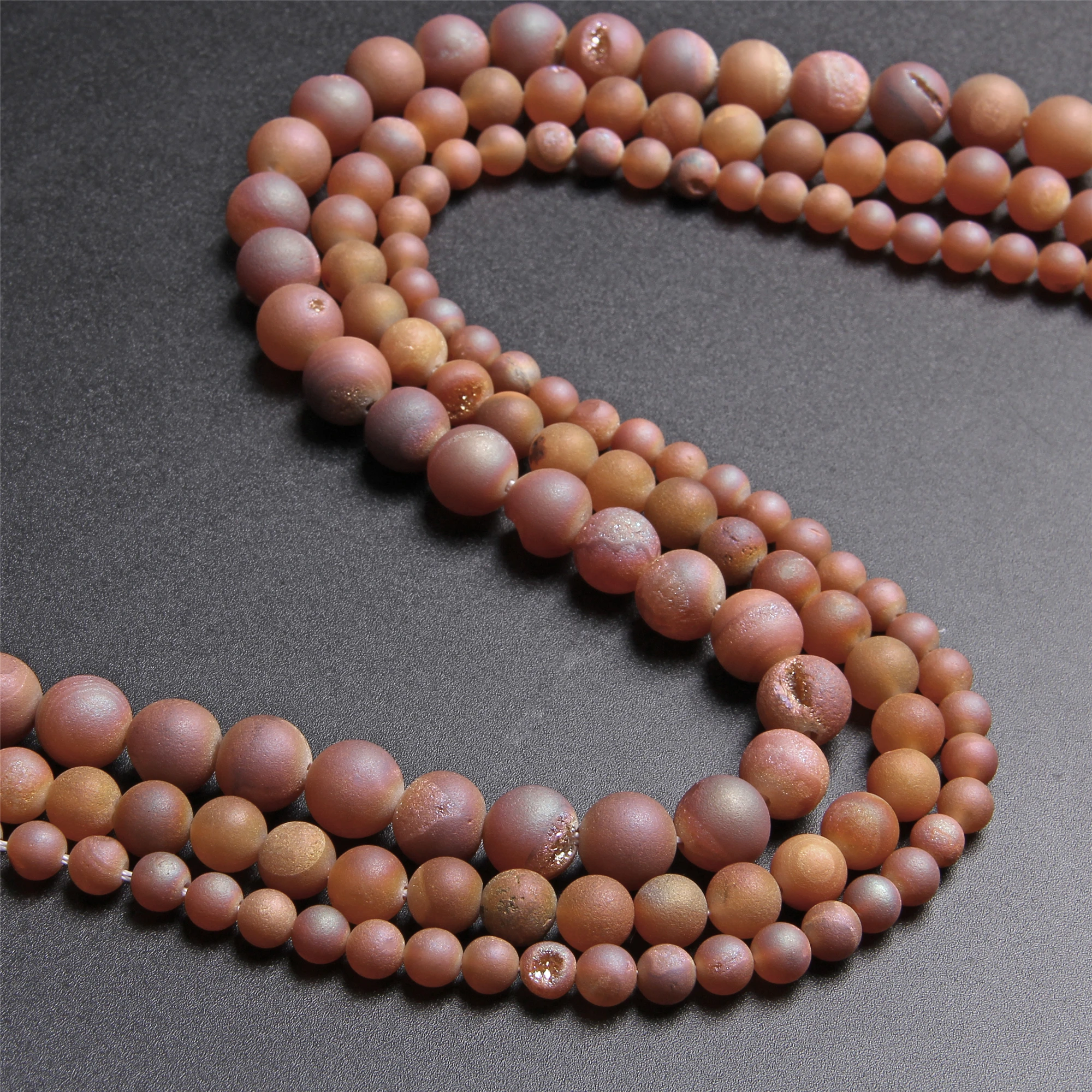 Оранжевые красные бусины с металлическим покрытием, круглые бусины россыпью, 6, 8, 10, 12 мм
