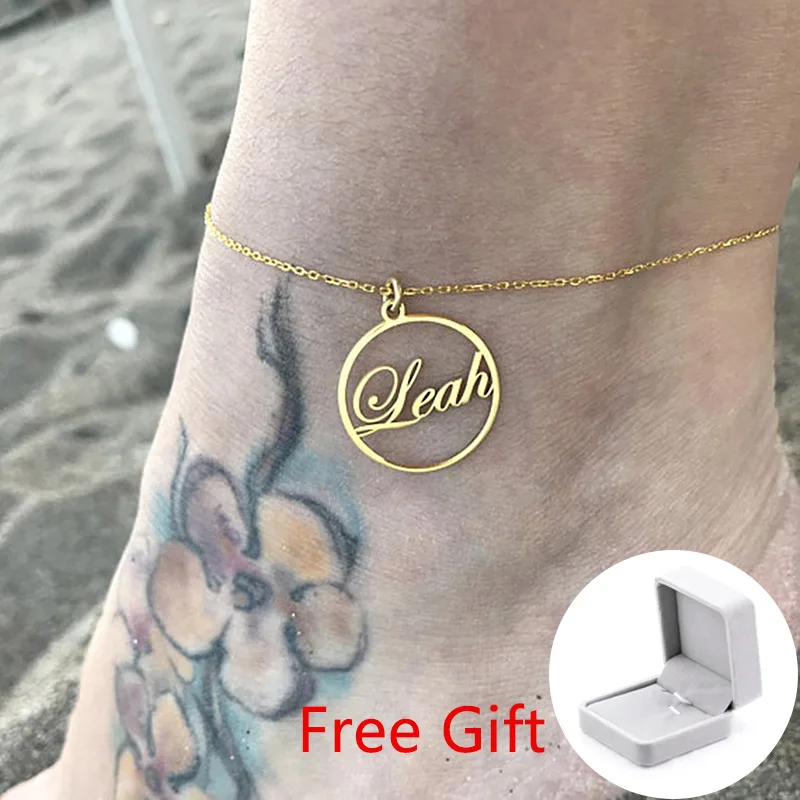 Заказное имя ножной браслет персонализированные нержавеющая сталь ножные браслеты для женщин Круглый Золотой табличка лодыжки браслет cheville ювелирные изделия для ног