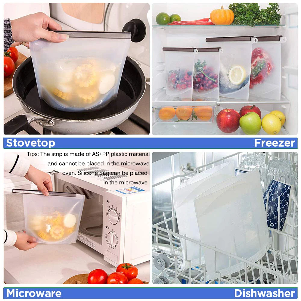Description This food bag is reusable silicone food bag with a number of features keep you and your family safe enjoy the convenience of on-the-go snacks or meals when at home, camping, work or school It completely isolated from the air to enter, to achieve best preservation effect. Features Color: Red, Blue, Green, White Material: Food-grade silicone Size: 29 x 21 x 8 cm -Resuable and Safe: Made of food grade silicone, healthy, eco-friendly, non-allergenic, non-reactive, hygienic, repels germs and chemicals, not toxic to environment, recyclable. - Multifunctional: Not only used in your kitchen, but also outdoor to keep your small items together, preventing them loss. - Airtight Seal and Leak--Proof : Keep all your food and drink FRESH and antioxidant. Never again will your food be stale or go bad in a plastic bag. - TEMPERATURE RESISTANT: Heat and cold resistant, temperature resistant -40+230, Safely used in microwave oven, refrigerator, toaster, freezer, dishwasher safe.