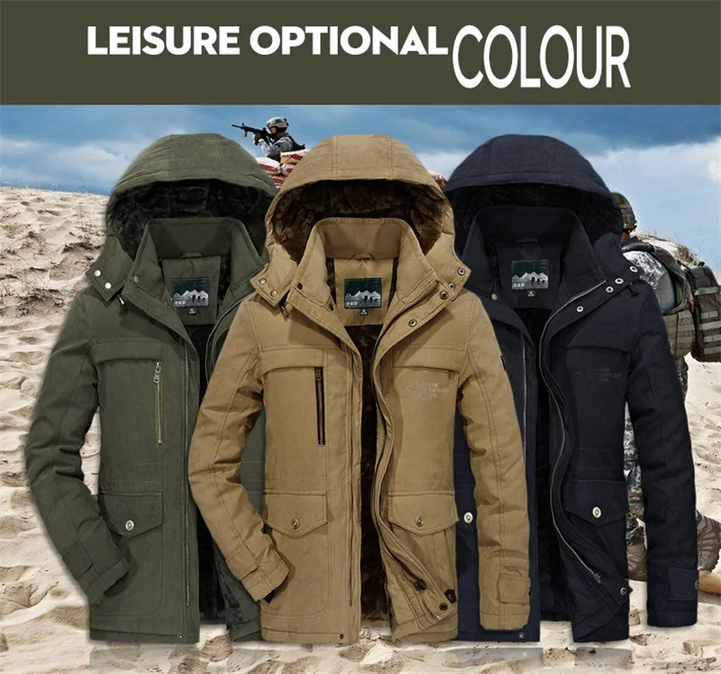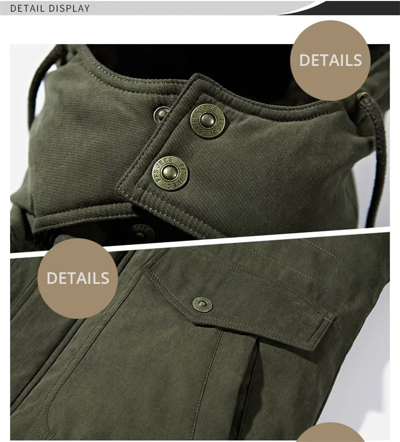 Мужская куртка парка с воротником стойкой CARANFIER однотонная Толстая зимняя 4XL