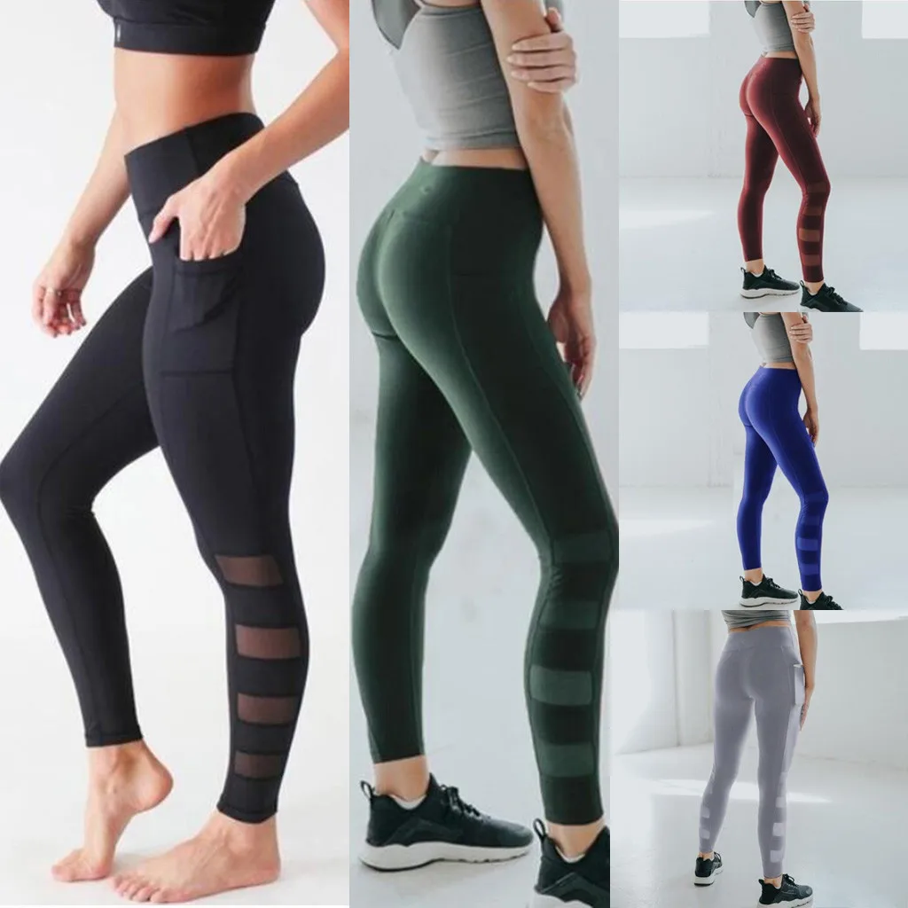 Для женщин Леггинсы с карманами для тренировок, спортивные штаны для занятий фитнесом, йогой и бегом