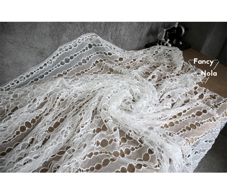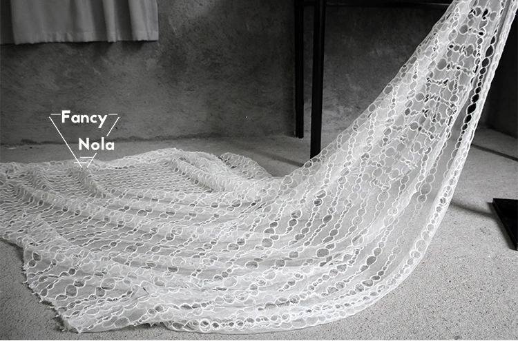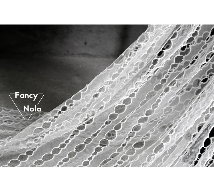 Номер товара: CG019 Фиксированная ширина: 165 см Длина: 0,5 м/шт. Таким образом, 1 шт. = 0,5 м * 1,65 м 2 шт. = 1,0 м * 1,65 м; 3 предмета в комплекте = 1,5 м * 1,65 м Покупайте больше (без обрезания) Текстура: марля + полиэстер * Креативная выдолбленная ткань, и есть много блестящих мелких деталей на этих краях кругов * Рекомендуется для сценической одежды
