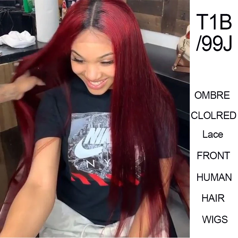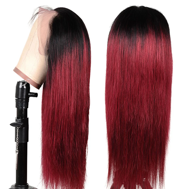 Pinshair 13*1 парики из человеческих волос на фронте шнурка 1B99J бордовый блонд Омбре перуанские прямые человеческие волосы кружевные части передние парики Remy Парики