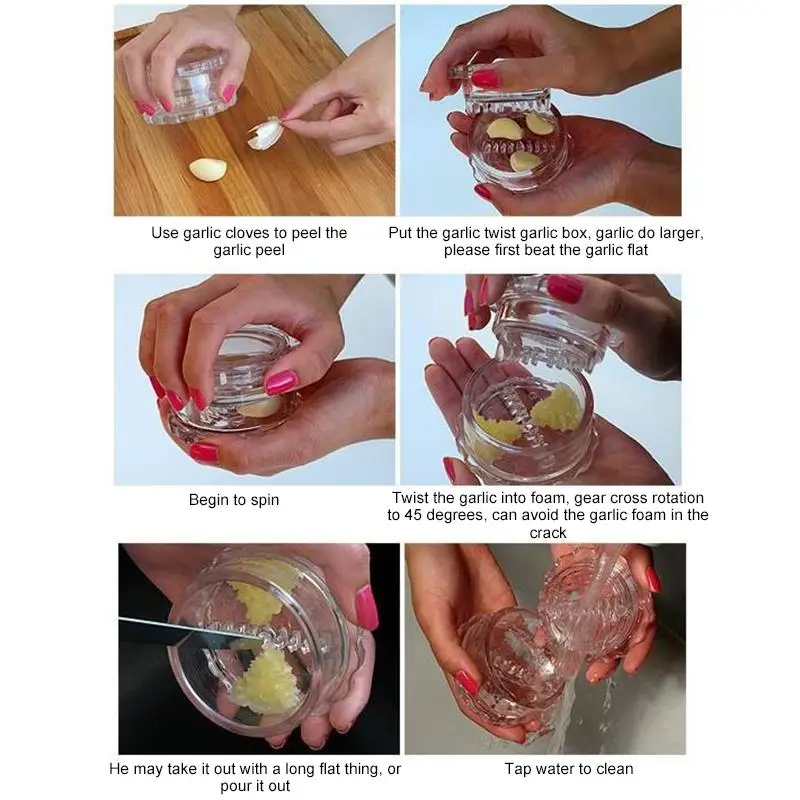 Легко и весело в использовании, просто поверните, чтобы легко Измельчить весь чеснок гвоздики в идеальные биты без использования разделочной доски и без сильного запаха на руках.