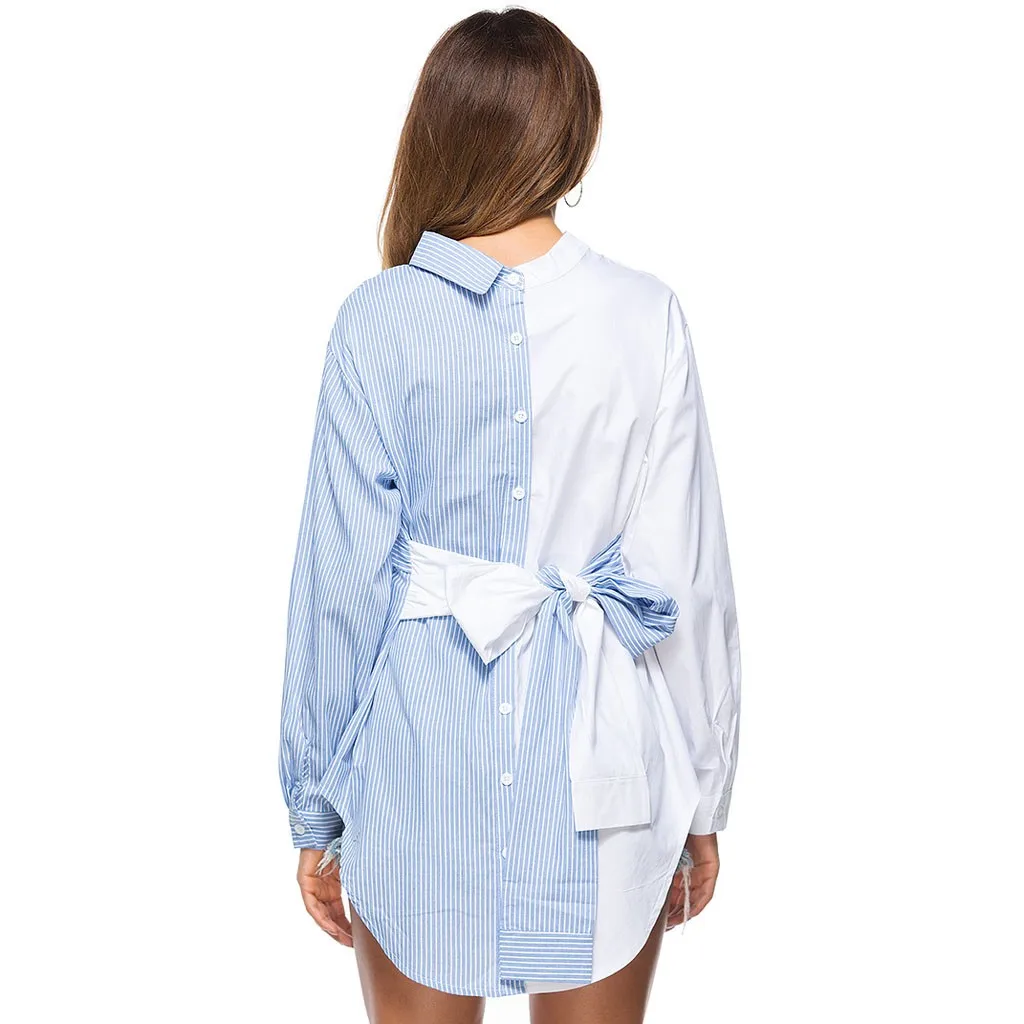 Модная женская Свободная рубашка с длинным рукавом и бантом с асимметричной полосатой рубашкой