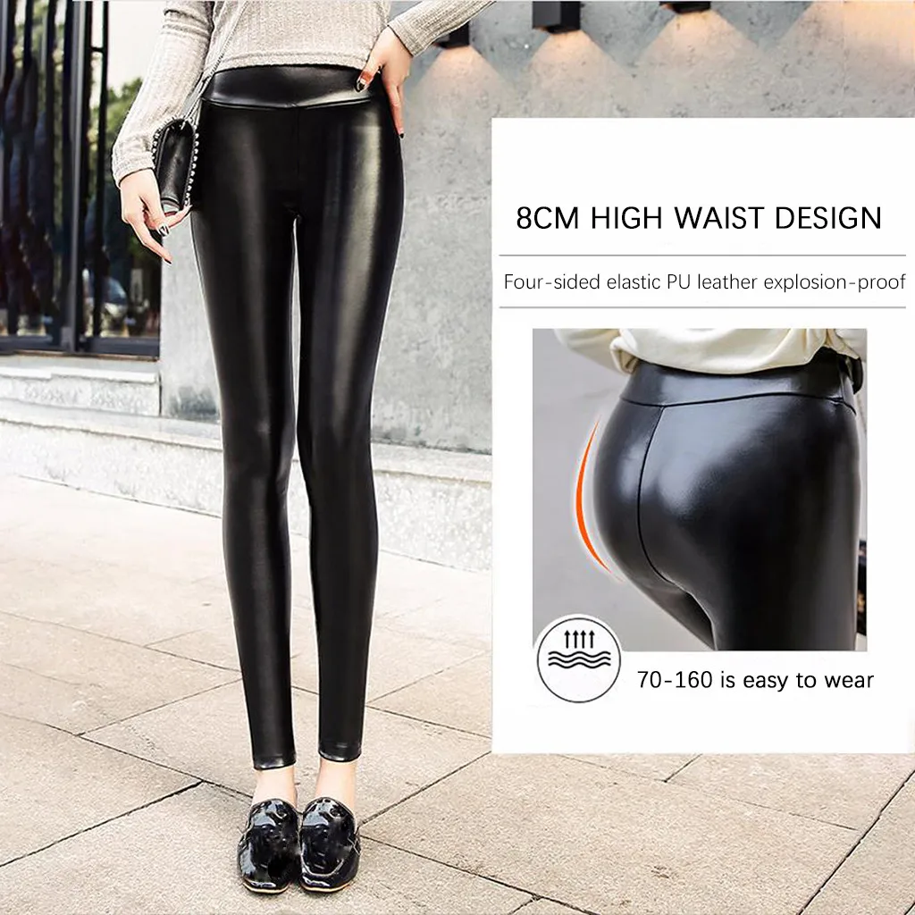 Stretch-Fit Faux Leather Shaper PU-High Waist Leggings Pants Warm For Women