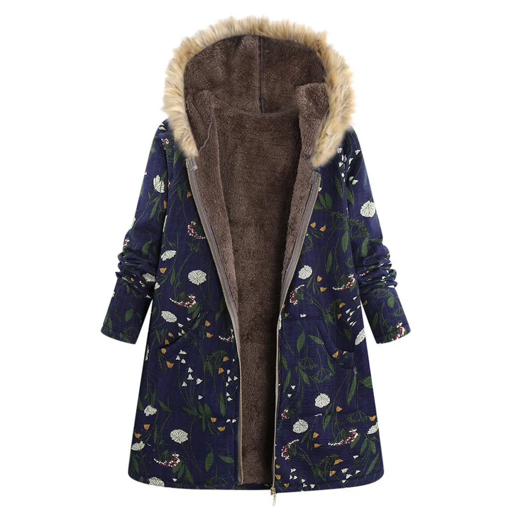 Женский кардиган на молнии с меховым воротником и бархатным принтом, длинное пальто на пуговицах, верхняя одежда