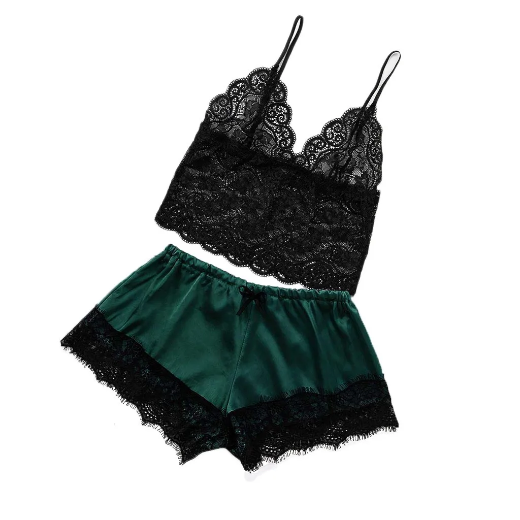 Женский атласный кружевной топик, шорты с бантиком и v-образным вырезом, пижама, женское нижнее белье, 2019