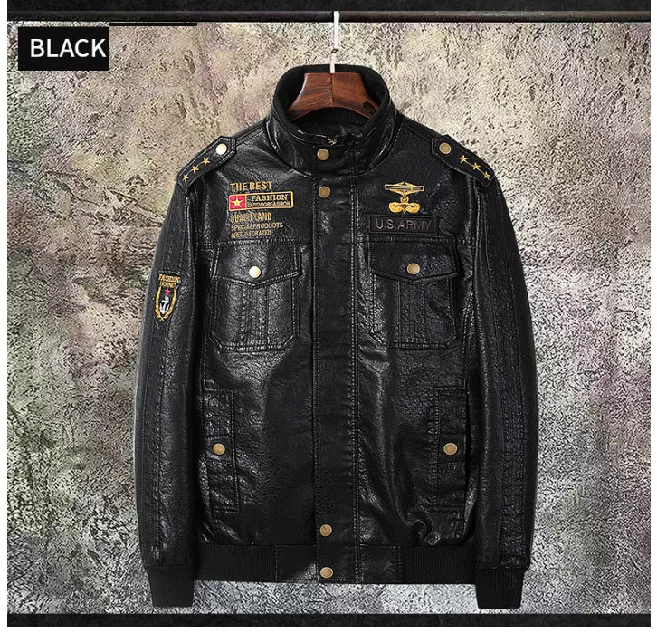 Зимняя теплая куртка-бомбер из искусственной кожи Мужская мотоциклетная куртка Военная винтажная куртка из искусственной кожи M-6XL Jaqueta De Couro