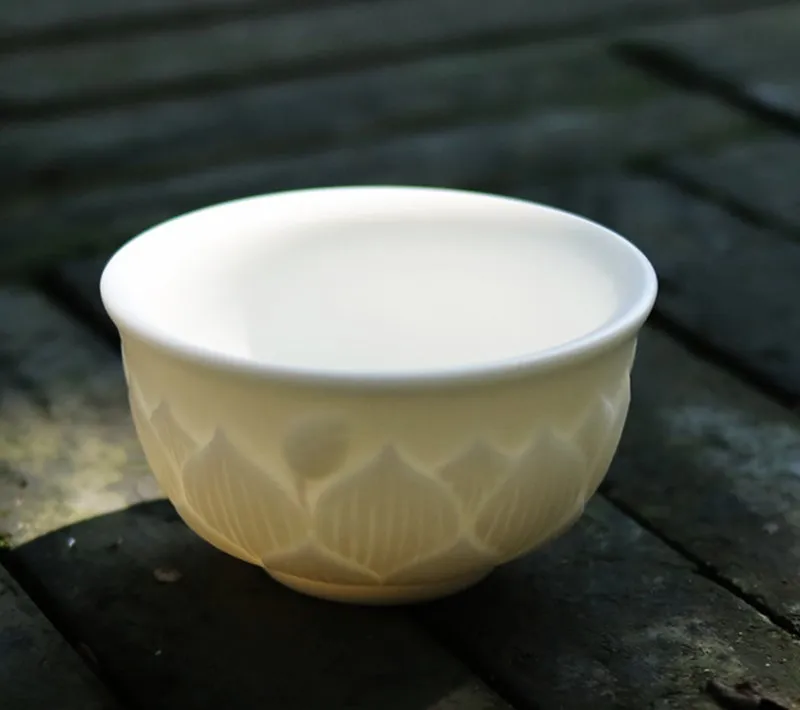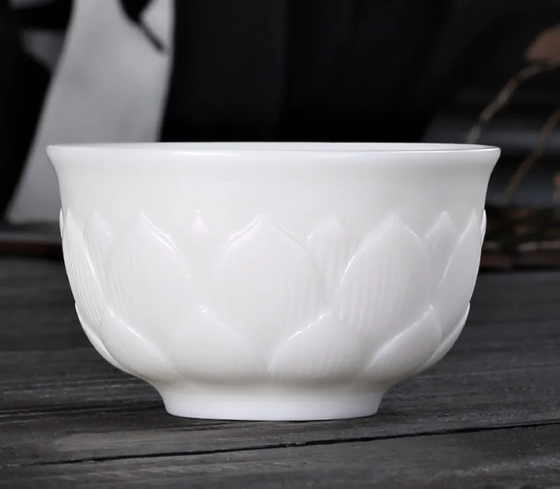 Lotus Flower Tea Cup White Porcelain Big Master Cup Handmade Tea Ceremony Teacup Bone China