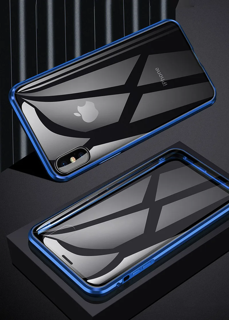 Двухстороннее стекло (передняя + черная) металлический магнитный чехол для iphone Описание: