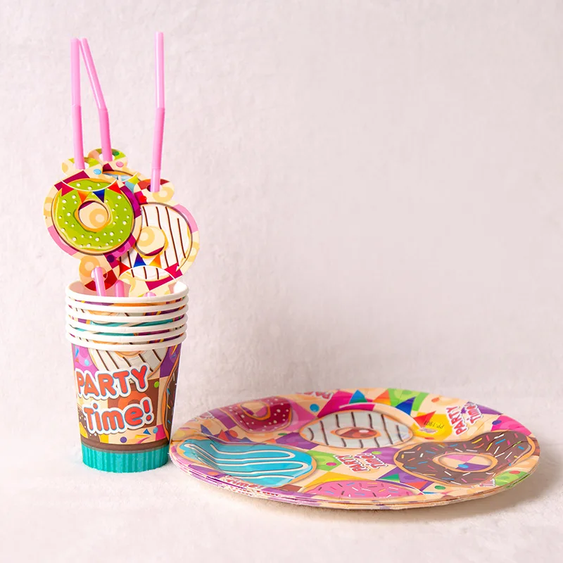 、 Пончик вечерние салфетки под чашки скатерть баннер для вечеринки в честь Дня Рождения вечерние Одноразовые столовые принадлежности для первого дня рождения вечерние принадлежности