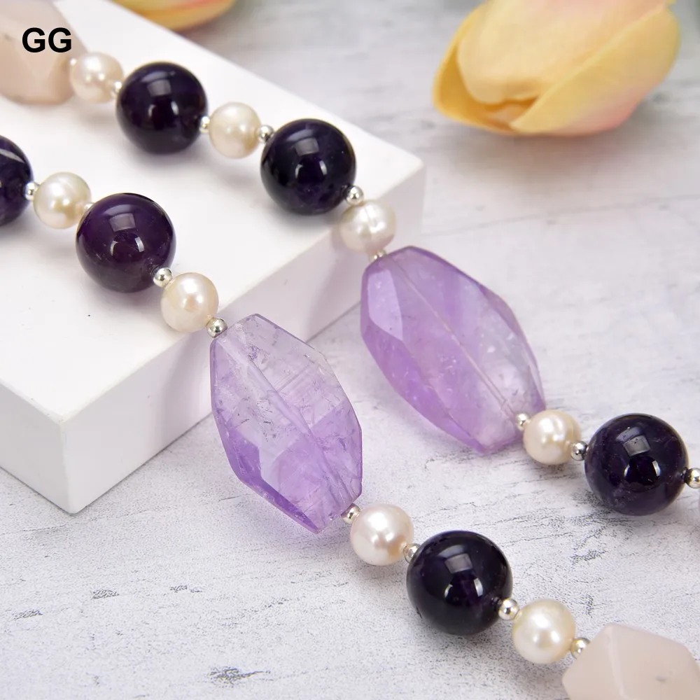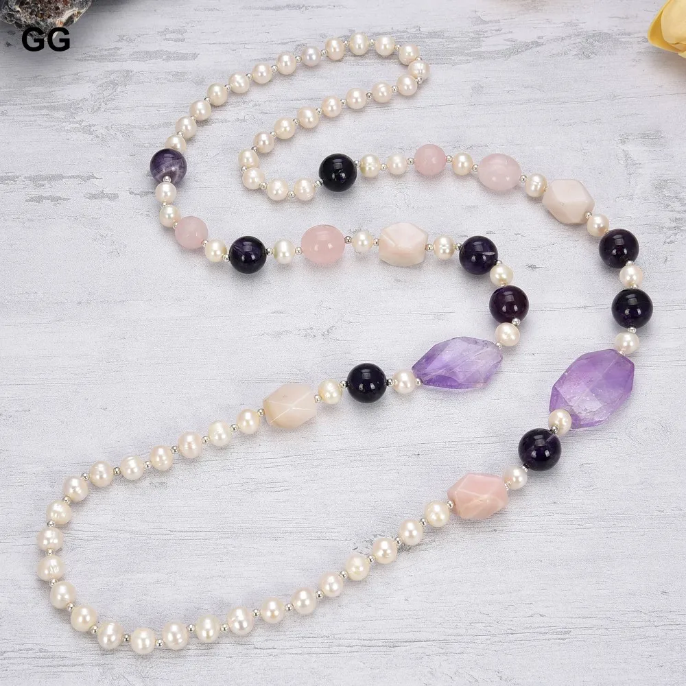 Информация о драгоценных камнями: Пресноводный Культивированный Жемчуг, круглый белый жемчуг, круглый и самородный аметист, круглый розовый кварц и розовый кварц, хорошее качество, высокий блеск!