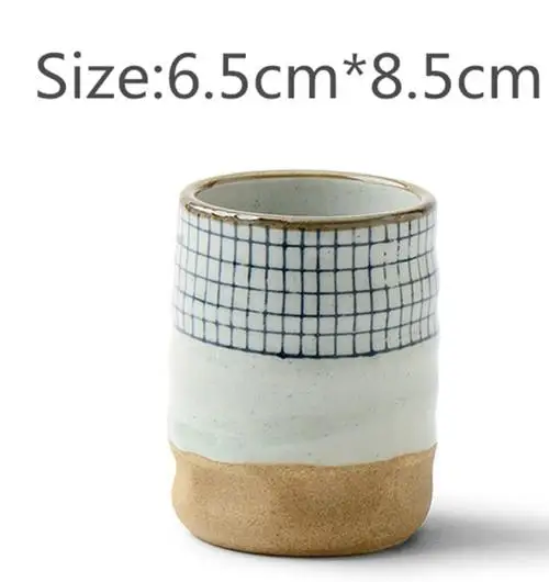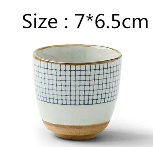 Ретро грубая керамическая кружка, Японская Чашка для супа, Керамическая ручная роспись, узор в решетку, чашка для чая, оригинальная кофейная чашка, чашки для вина