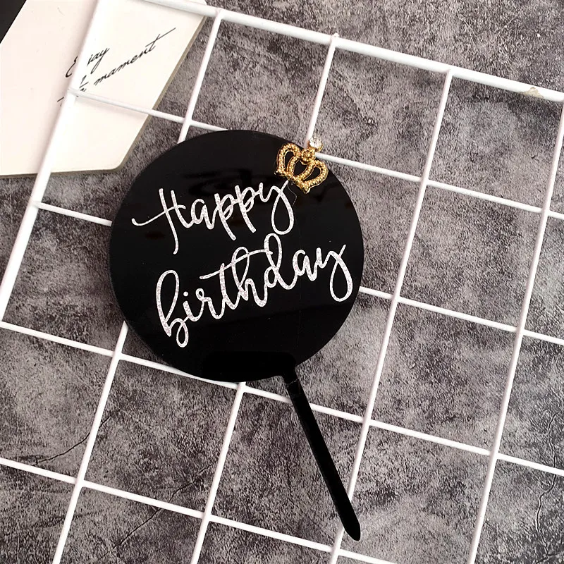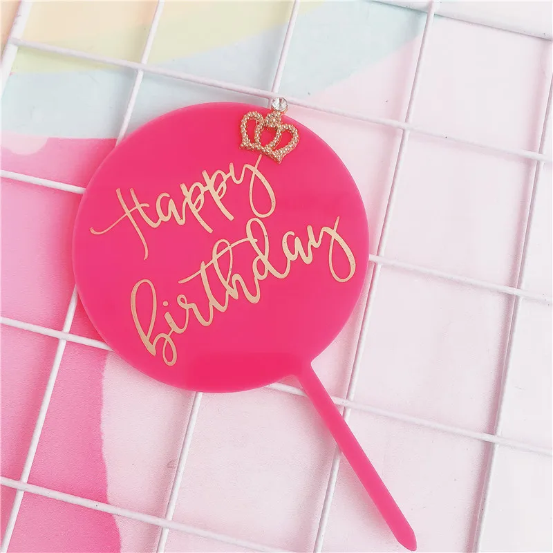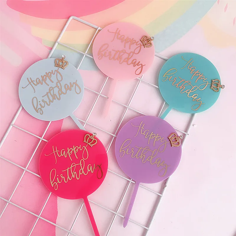Позолоченная акриловая круглая корона с днем рождения, топпер для торта, король, королева, принц, принцесса, королевская тема, украшение торта, товары для вечеринок
