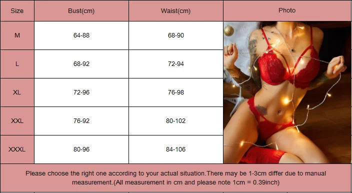 Обратите внимание что небольшая разница в цвете считается приемлемой. Это может быть связано с положением источника света и с настройками экрана. Посылка включает в себя: 1 Женский сексуальный комплект нижнего белья с бюстгальтером