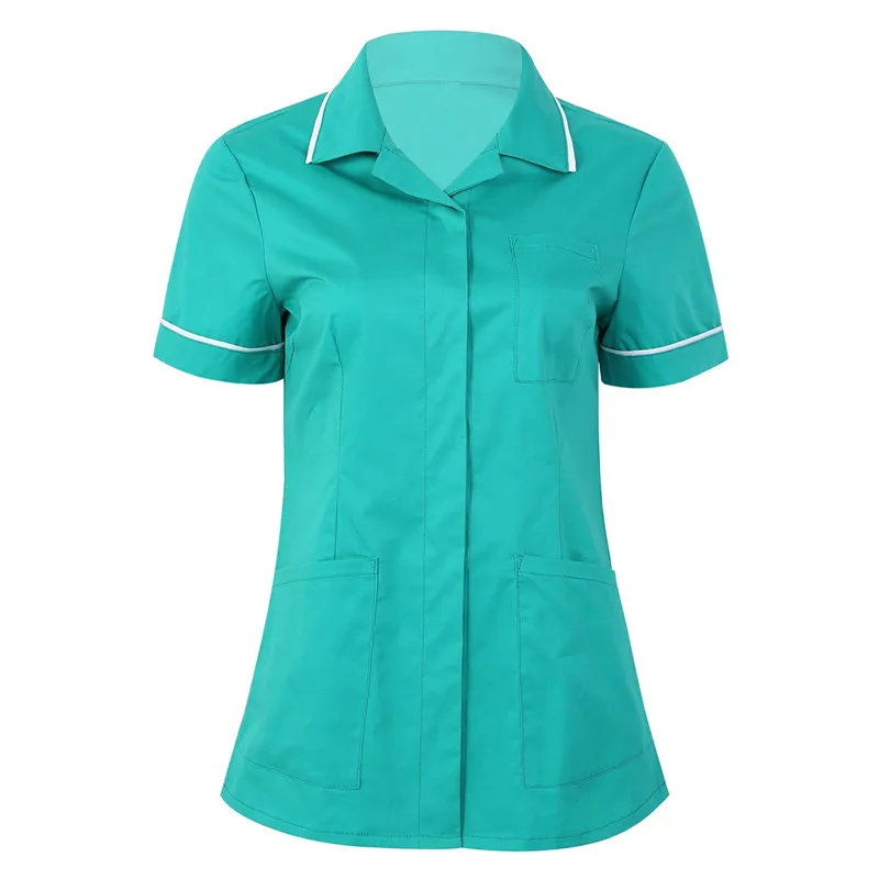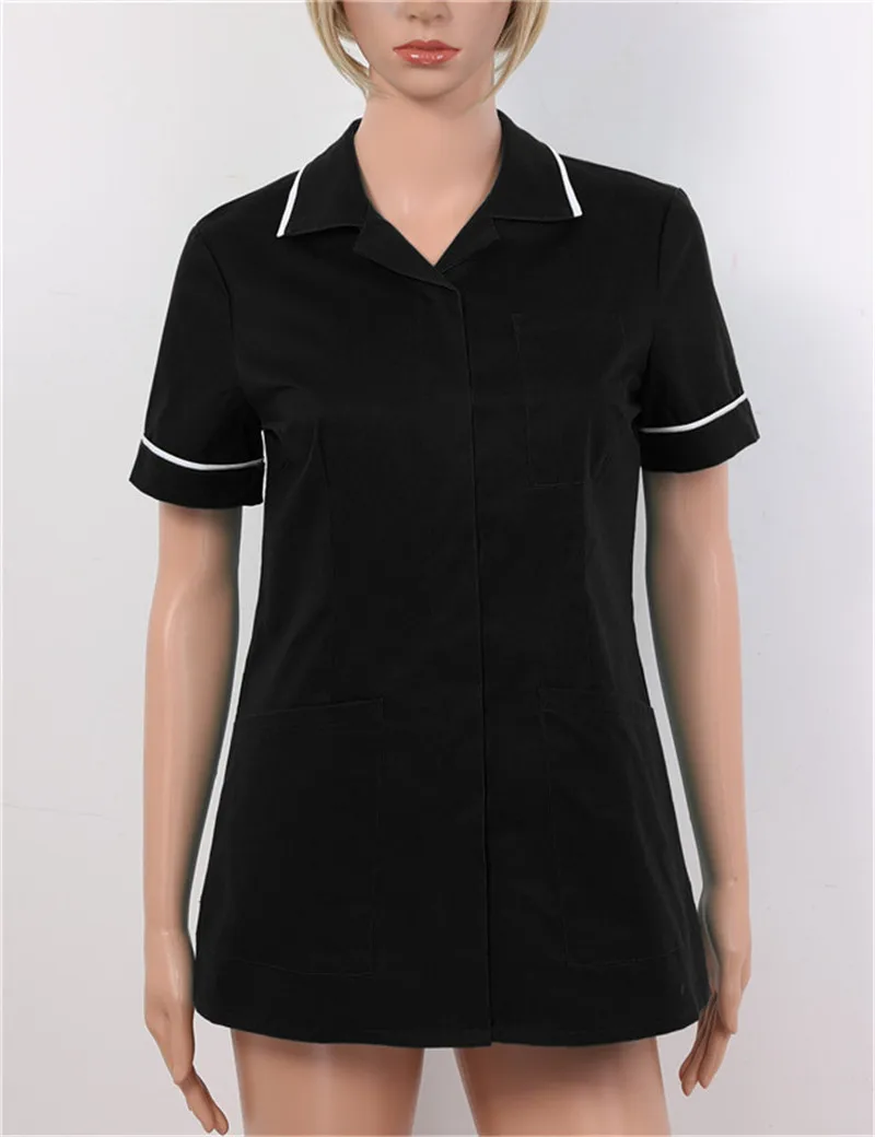 Женская женская медицинская форма, топы с короткими рукавами, на пуговицах, для гостиничной горничной, медсестры, забота, рабочая одежда, Акушерская, Медицинская туника