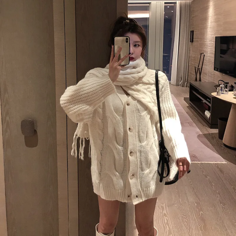 Length: 70CM Bust: 104CM Shoulder Width: 51CM Sleeve Length: 55CM Equipped with scarfDear friend, welcome to RUGOD.