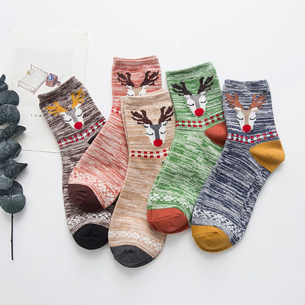 Женские Мужские носки повседневные рабочие принт с рождественским лосем удобные хлопковые носки
