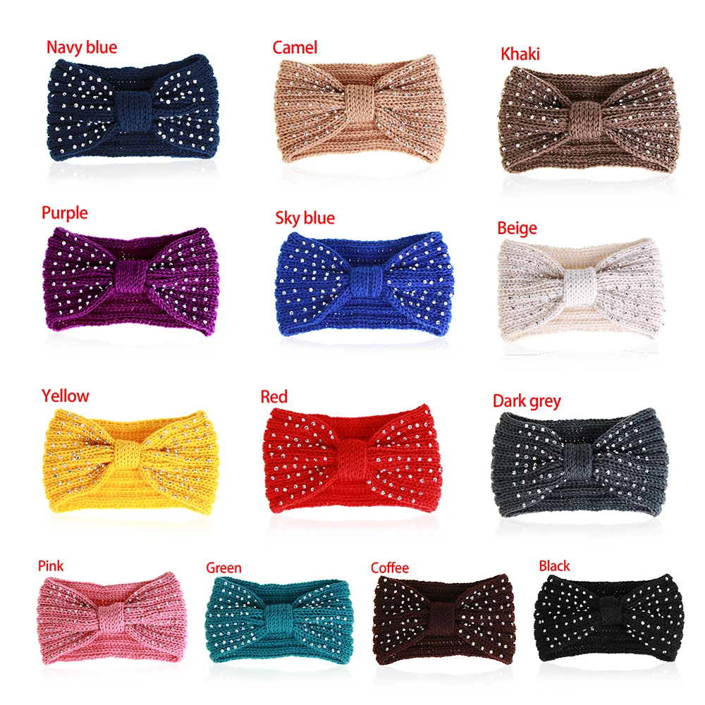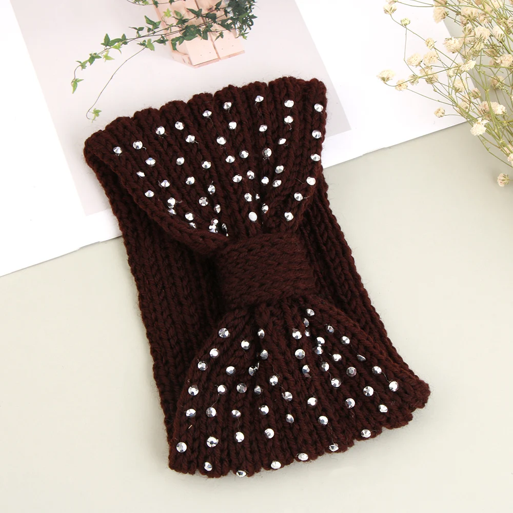 1 шт. вязаная повязка для волос, вязаная повязка на голову, гетры для ушей, стразы, ободок для головы, модный головной убор для девочек, женские зимние уличные аксессуары
