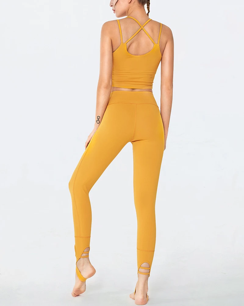Комплект из 2 предметов, женский укороченный топ для йоги, леггинсы для фитнеса, однотонный комплект спортивной одежды, леггинсы с высокой талией, спортивные комплекты, спортивная одежда для йоги